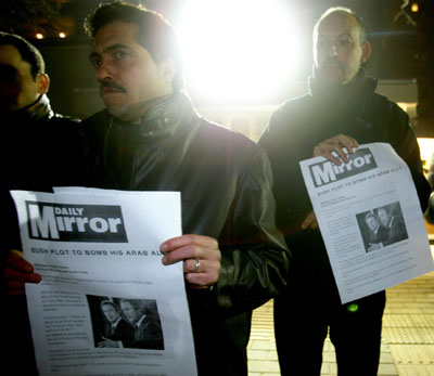 Protest against alleged Bush bombing plan (newsphoto) Updated: 2005-11-25 07:08