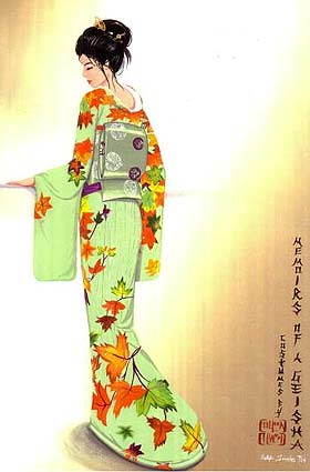 enticing. Sayuri, the lead character, wears a warm, golden kimono embroidered