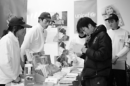 A guest choosing a greeting card at the UNICEF booth. |