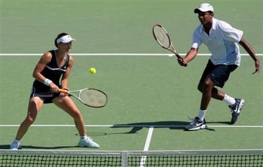 partners Martina Hingis of Switzerland and Mahesh Bhupathi of India return