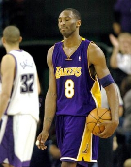 guard Kobe Bryant walks back to the bench after the Sacramento Kings