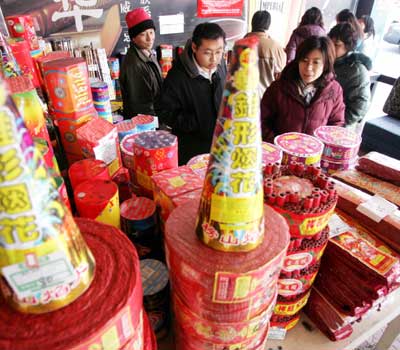 a stall selling fireworks in Beijing January 25, 2006. Beijing has lifted