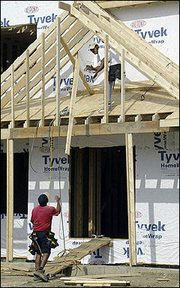 Construction workers build a new home. A real