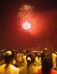 to watch fireworks displayed for celebration of the lunar new year.
