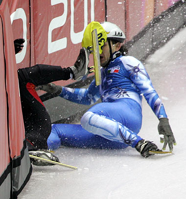 Yuri Confortola (230) from Italy (R) crashes with Takahiro Fujimoto (235)