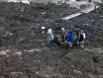 Leyte province in this February 17, 2006 video grab. Mudslides triggered