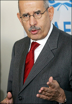 chief Mohamed ElBaradei speaks to the press in Vienna. The UN nuclear