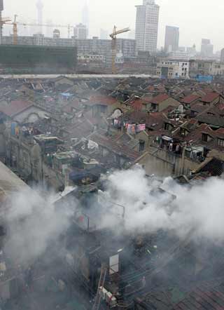 Fire breaks out at a house in shikumen area in Shanghai, February 20, 2006. Shikumen