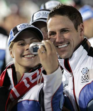 U.S. speed skater Chad Hedrick (R) is photographed by an unidentified