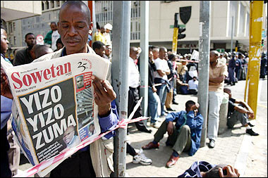 President Jacob Zuma reads a newspaper outside the court in Johannesburg
