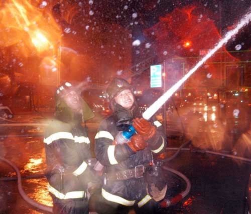 Firefighters try to extinguish a major fire
