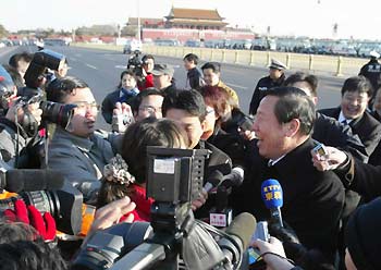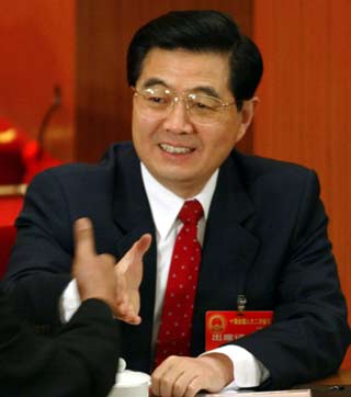 | Jiang Zemin and Hu Jintao join panel discussion of the Army delegation |