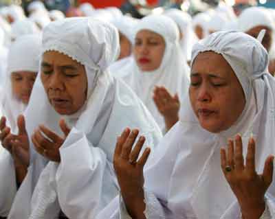 Acehnese residents pray for Muslim holiday Eid al-Adha