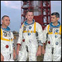 Three American astronauts died when fire swept the Saturn rocket on its launch pad at Cape Kennedy.