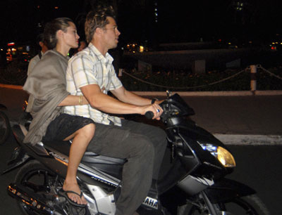 Hollywood couple Pitt and Jolie ride a motorbike around Vietnam's southern Ho Chi Minh City.