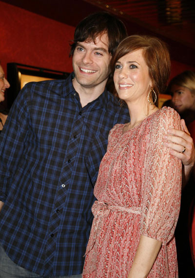 Co-stars Bill Hader (L) and Kristen Wiig arrive at the premiere of "Adventureland" at the Mann Chinese 6 Theater in Hollywood, California March 16, 2009. [Agencies]