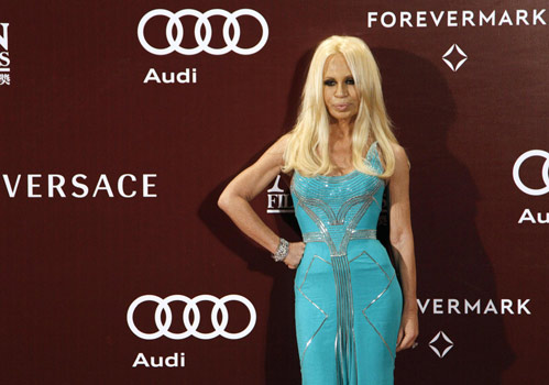 Italian fashion designer Donatella Versace poses upon her arrival at the Asian Film Awards in Hong Kong March 22, 2010. [Agencies]