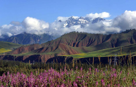 Chinese actress Cecilia Cheung poses for photos of an advertisement with a cute boy.[Photo/Xinhua]