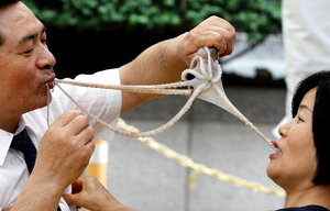 Models present creations from PINGHE by Chinese designer He Ping during London Fashion Week Spring/Summer 2014, at the Fashion Scout venue in London, on Sept 13, 2013.[Photo/Xinhua] |