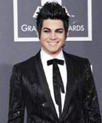 Singer Adam Lambert poses on red carpet at 52nd annual Grammy Awards