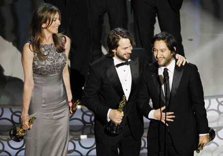 Director Bigelow, writer Boal, and producer Shapiro speak after "The Hurt Locker" won Best motion picture in Hollywood.[Agencies]