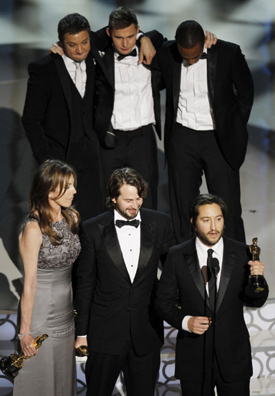 Director Bigelow, writer Boal, and producer Shapiro speak after "The Hurt Locker" won Best motion picture in Hollywood.[Agencies]