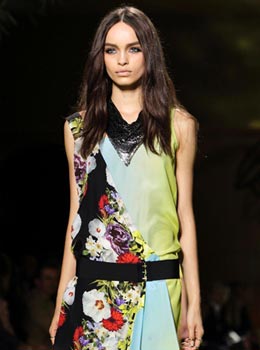 Models present creations from the Versace Spring/Summer 2014 collection during Milan Fashion Week September 20, 2013.