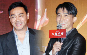 Tony Leung and Sean Lau attend a press conference for the upcoming film "The Great Magician" in Shanghai on Nov 10, 2011.