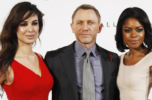 Actor Daniel Craig poses with Berenice Marlohe (L) and Naomie Harris while launching the start of production of the new James Bond film "SkyFall" at a restaurant in London November 3, 2011.
