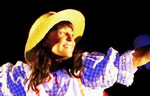 Actress Veronika Miklova of The National Black Theatre of Prague performs during a press rehearsal of "Alice in Wonderland" in Madrid