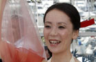 Director Naomi Kawase (2nd L) arrives on the red carpet with cast members Tohta Komizu (L) and Hako Oshima (R) for the screening of the film "Hanezu No Tsuki", in competition at the 64th Cannes Film Festival, May 18, 2011.