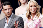 Cast member Amber Heard and co-stars Eddie Cibrian and David Krumholtz talk during the NBC Universal session for "The Playboy Club" at the 2011 Summer Television Critics Association Cable Press Tour in Beverly Hills, California August 1, 2011.