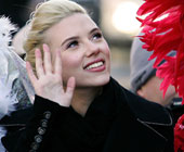 Actress Scarlett Johansson waves to fans during a parade to honor her as Hasty Pudding Theatricals' Woman of the Year at Harvard University in Cambridge, Massachusetts February 15, 2005.