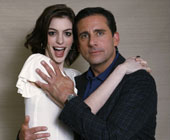 Anne Hathaway gave Steve Carrell pink eye when they kissed in new movie 'Get Smart'.