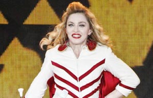 US singer Madonna performs on stage during her MDNA tour at the Olympic Stadium in Moscow August 7, 2012.