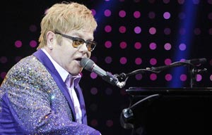 British singer Elton John performs during a concert as part of his "Greatest hits Live 2012" world tour in Bratislava.