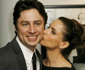 Actress Amanda Peet gives co-star Zach Braff a kiss at the premiere of the film "The Ex" in New York May 3, 2007. [Reuters]