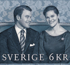 A set of three postage stamps to celebrate the wedding of Sweden's Crown Princess Victoria and Daniel Westling.