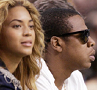 Jay-Z and Beyonce watch the Boston Celtics play the Cleveland Cavaliers in Game 3 of their NBA Eastern Conference playoff basketball series in Boston, May 7, 2010.