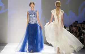 Models present creations from the Tadashi Shoji Spring/Summer 2013 collection during New York Fashion Week September 6, 2012.