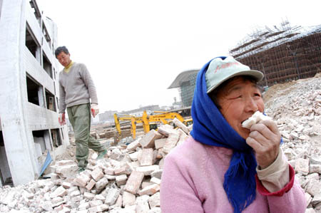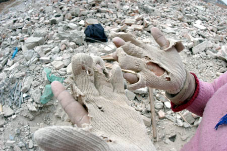 It's a hard life for 54-year-old Zhao Xiulan. She gets up early every morning and brings some water with her while she works. "I only eat mantou, (steamed bread), and nothing for lunch. I sometimes forget lunch", Zhao told a journalist as she searched for iron at a construction site.