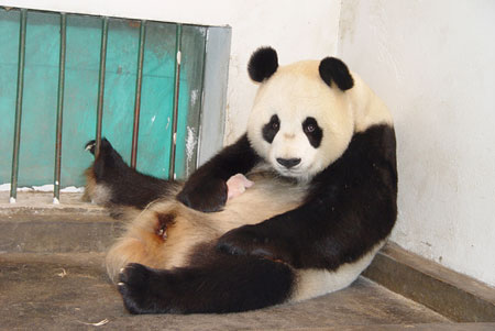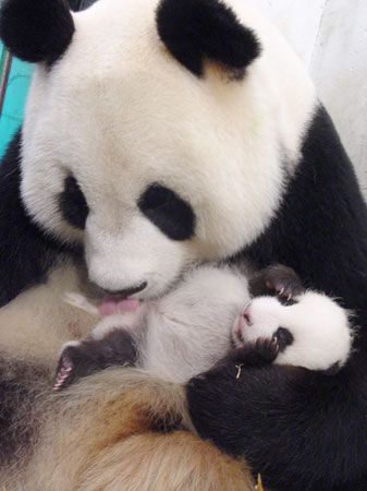 Giant panda cub No.7(www.szjzcy.com)Updated: 2007-01-25 13:41 Giant panda No. 7 Features: the panda is able to crawl on the ground. Probably because he is familiar with the person raising him, he is quite active and very cute when he is called, gazing around as he walks, opening his big eyes and chewing the air with his square mouth and raising his fluffy round head. If you play with him, he will roll shamelessly around on the ground like a naughty boy. [Photo courtesy of The Research and Conservation Center for Giant Panda]