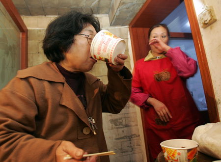 Fang has a free meal every day provided by a restaurant from which she takes the leftovers for the dogs. [newsphoto]