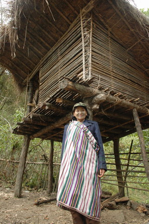 A woman stands in front of her barn, October 30, 2007. Derung people largely depend on farming for their livelihood. [Xinhua]