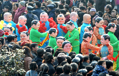 Children play during a snow storm in New York, January 21, 2012. [Photo/Agencies] |