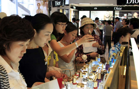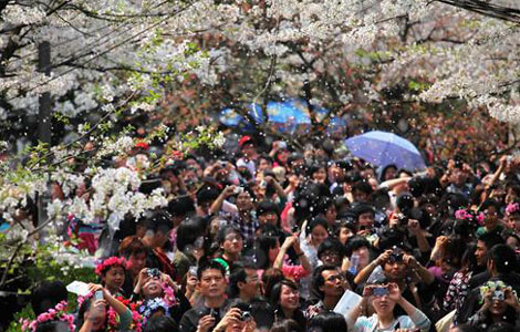 Three old women wearing traditional Indian clothes visit India Gate in Delhi on Feb 25.