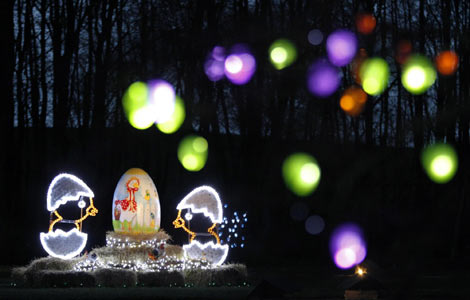 A group of dancers perform at the opening ceremony of a cultural festival in Shche county, the Xinjiang Uygur autonomous region, on April 8, 2012. The festival consists of a photo competition, a farmers' painting contest, a local snacks and handicraft s exhibition, and a folk sports event. [Photo by Jin Wei / For China Daily]