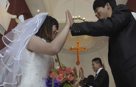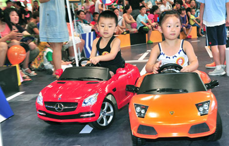 A motorbike drives through a flooded street in downtown Beijing on Saturday afternoon. [Photo/Xinhua]