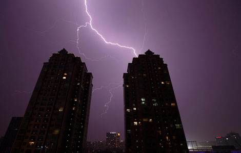 Lightning is seen above buildings in Beijing, July 31, 2013. [Photo/Agencies]