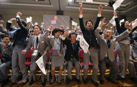 Wrestlers Li Hui and Sun Yanan, Sept 7, 2013 [Photo/Xinhua] |